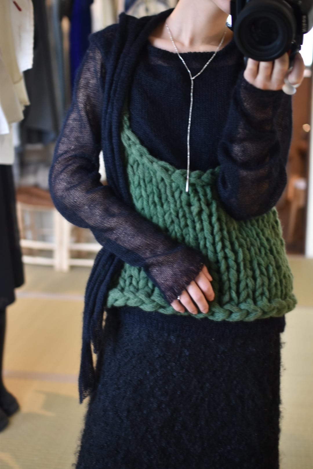 ゆったりとしたサイズ感なのでハイネックのニット、スエット、シャツ、薄手のジャケットなど色々なスタイリングにプラスαでお楽しみください。