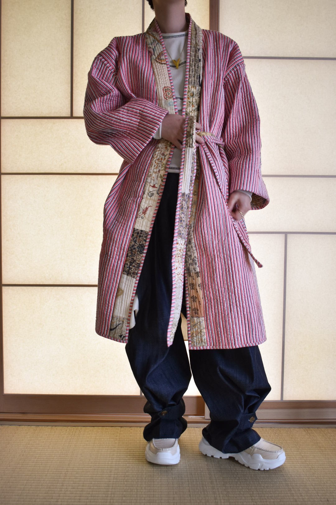 現在インドで制作されているリバーシブルのパッチワークコート。
