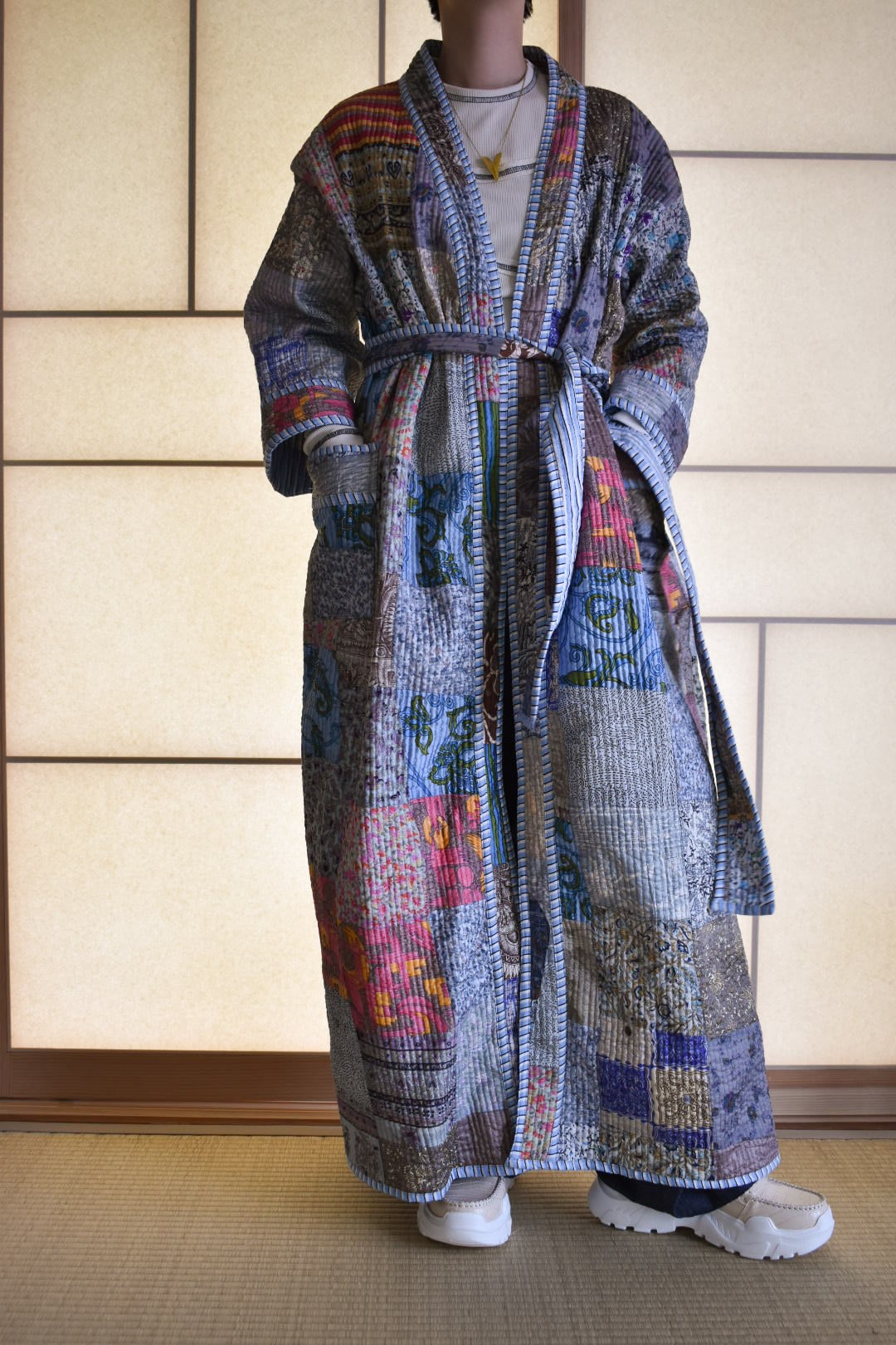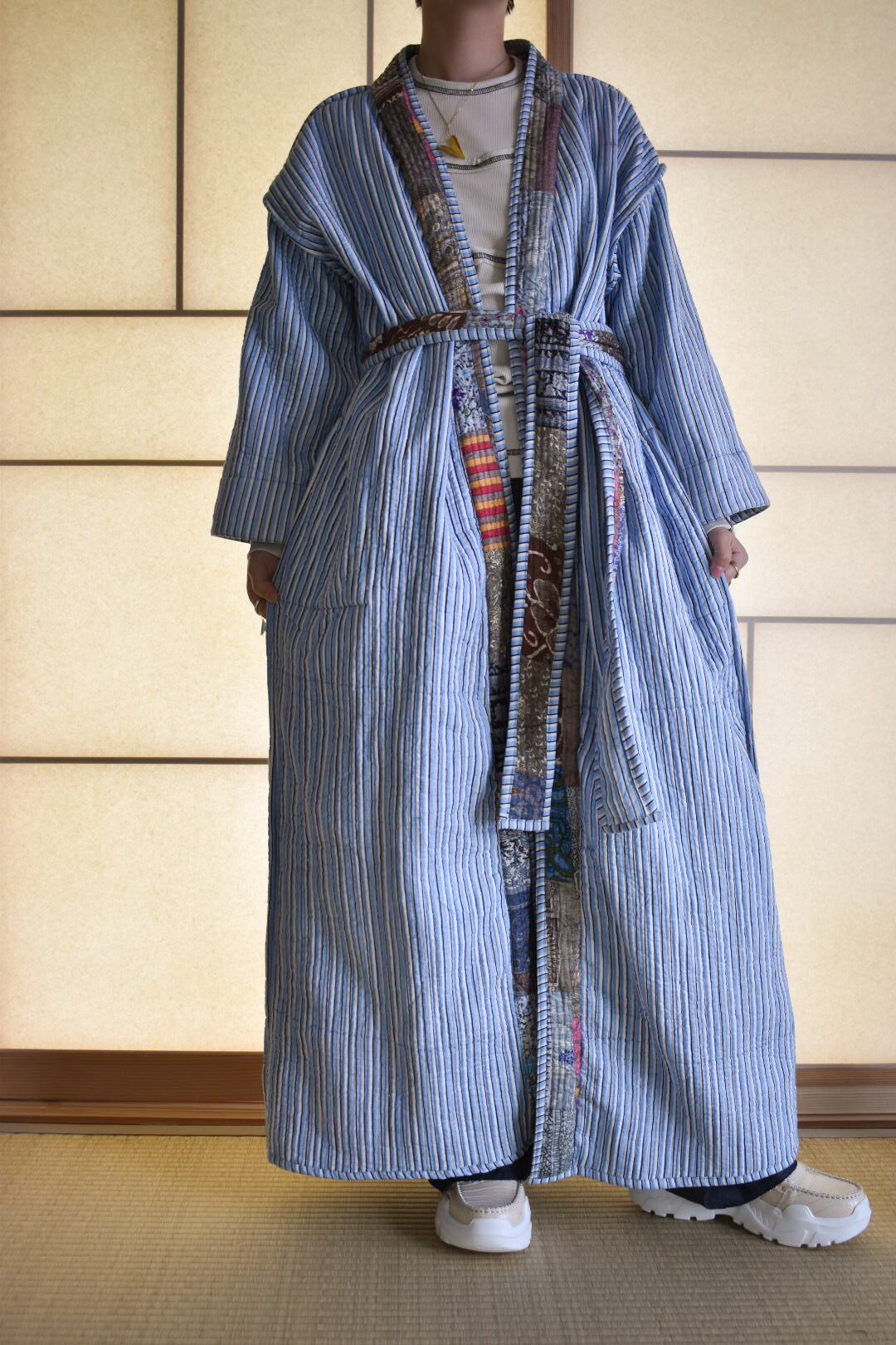 現在インドで制作されているリバーシブルのパッチワークコート。