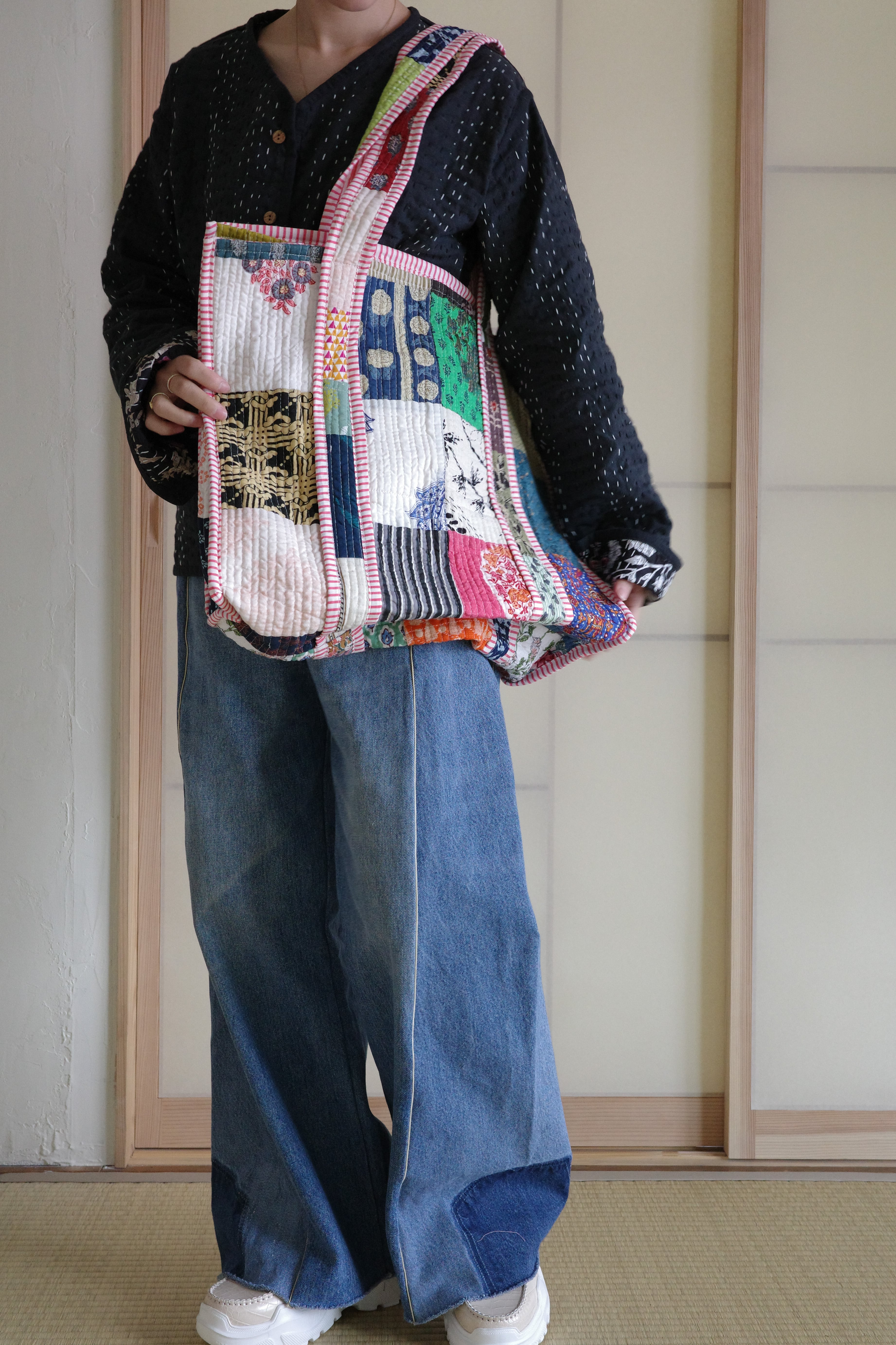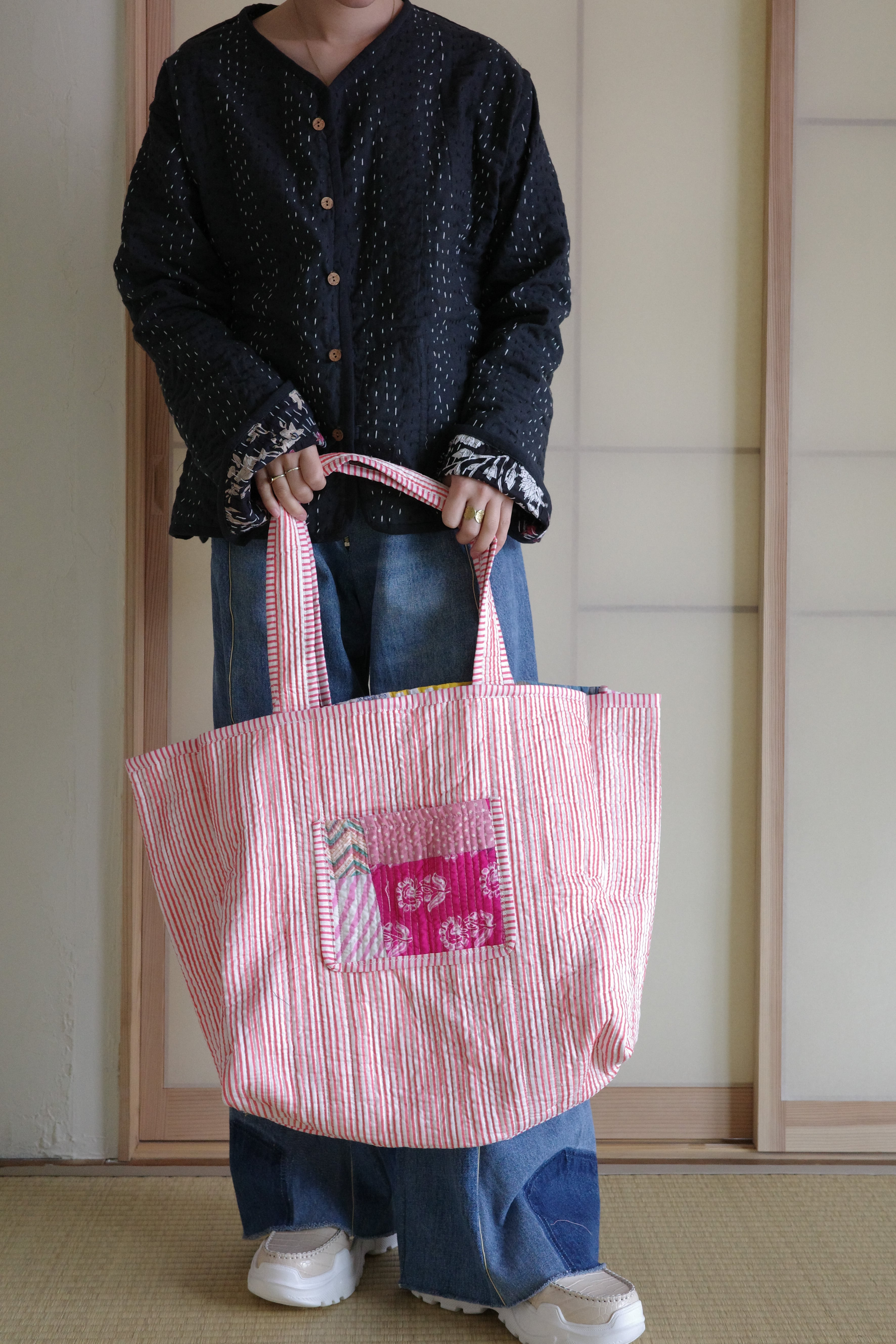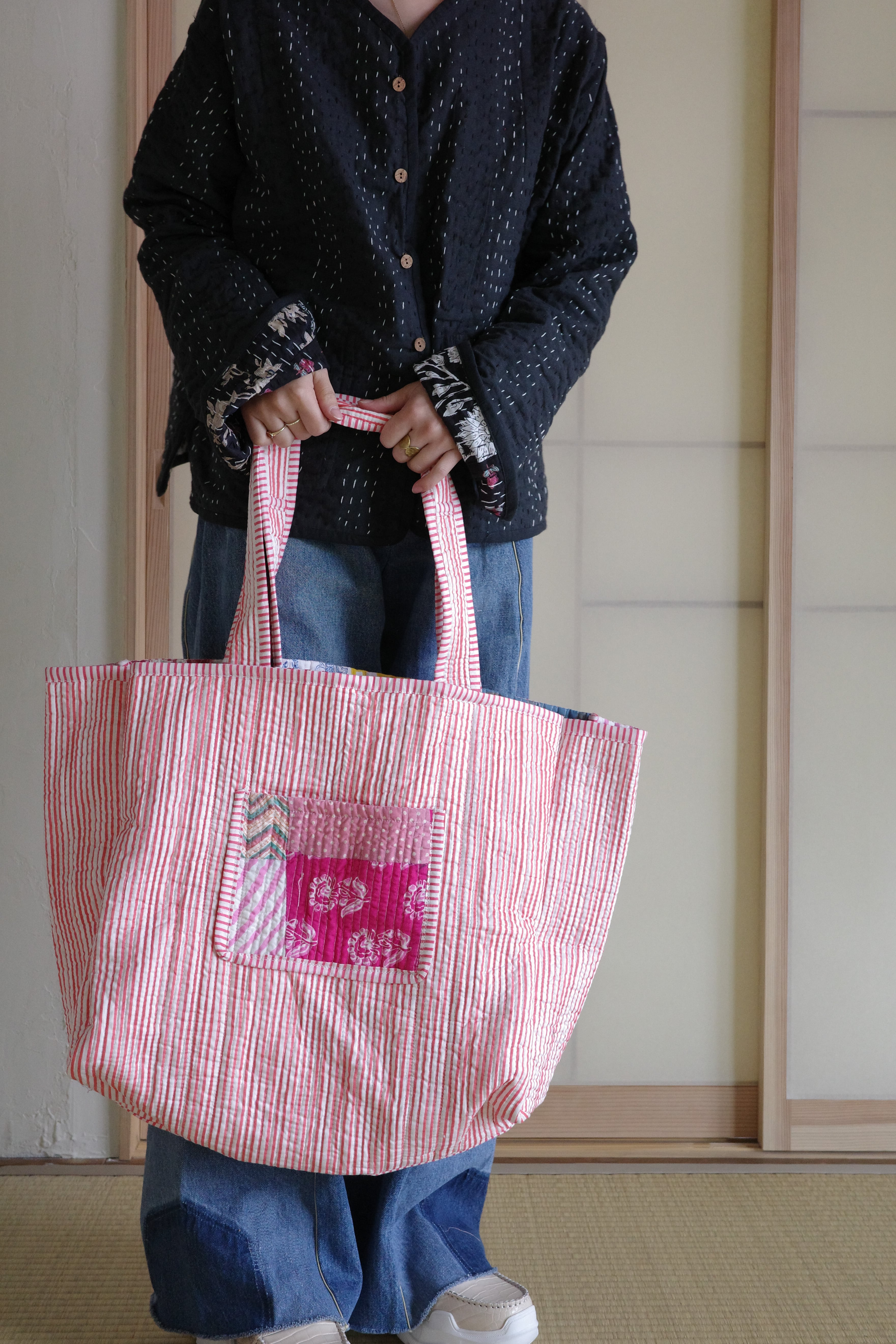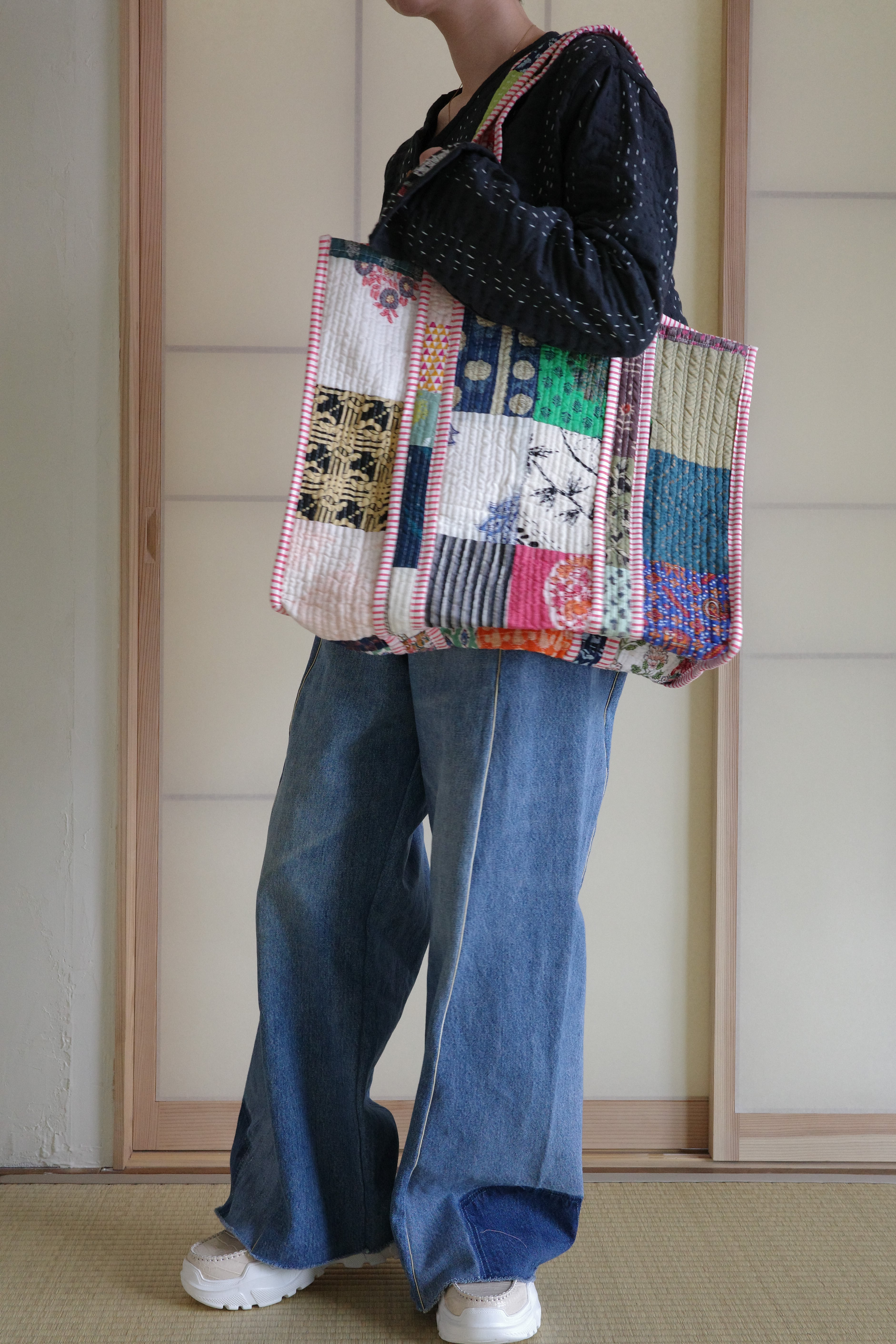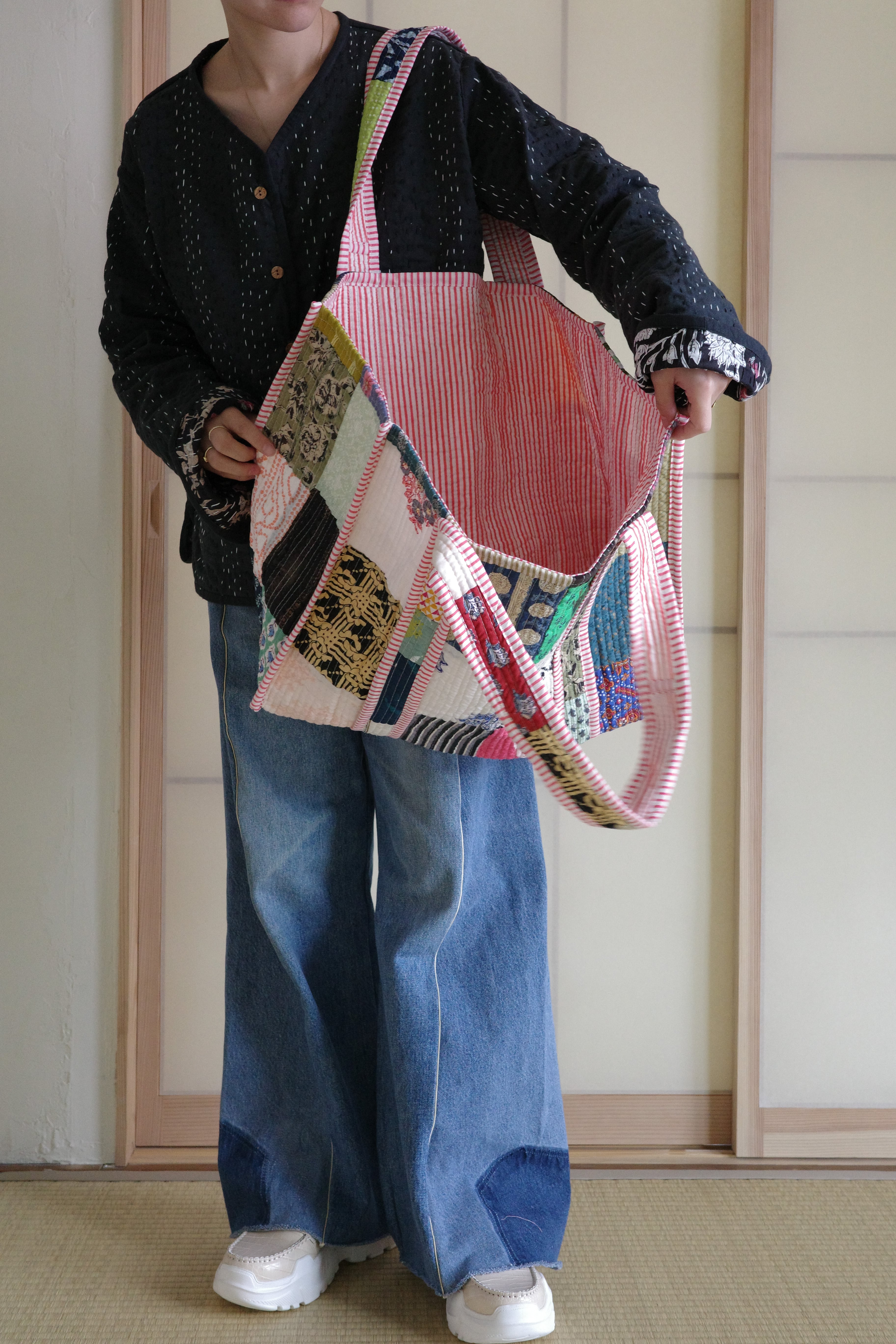 現在インドで制作されているキルティングのパッチワークトートバッグ。