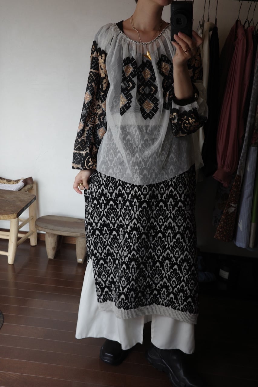 古い洋館の壁紙をイメージしたオリジナルジャカードニットスカート。