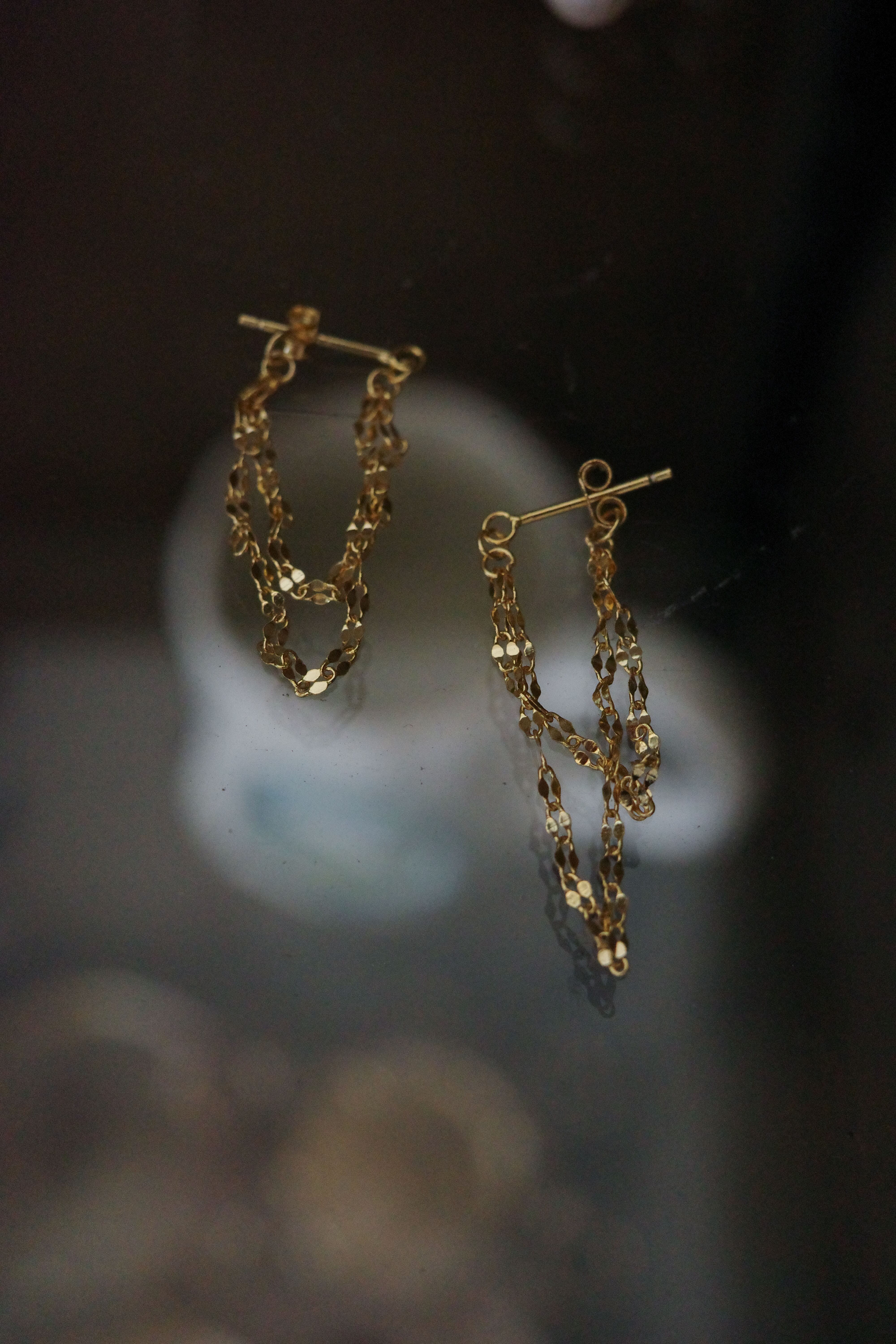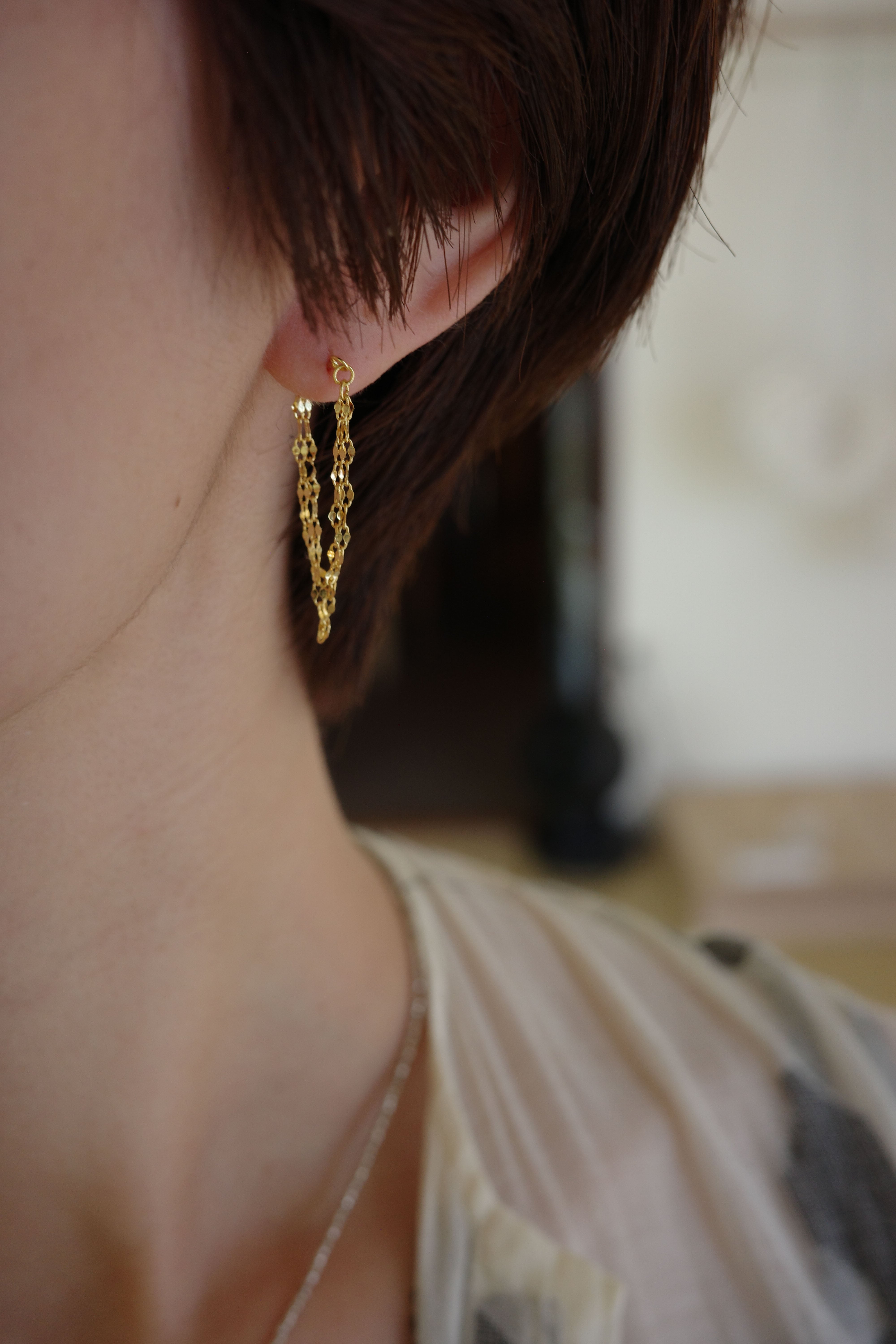 とても軽量でカジュアルなスタイルにもオケージョンにも使えるチェーンピアス。