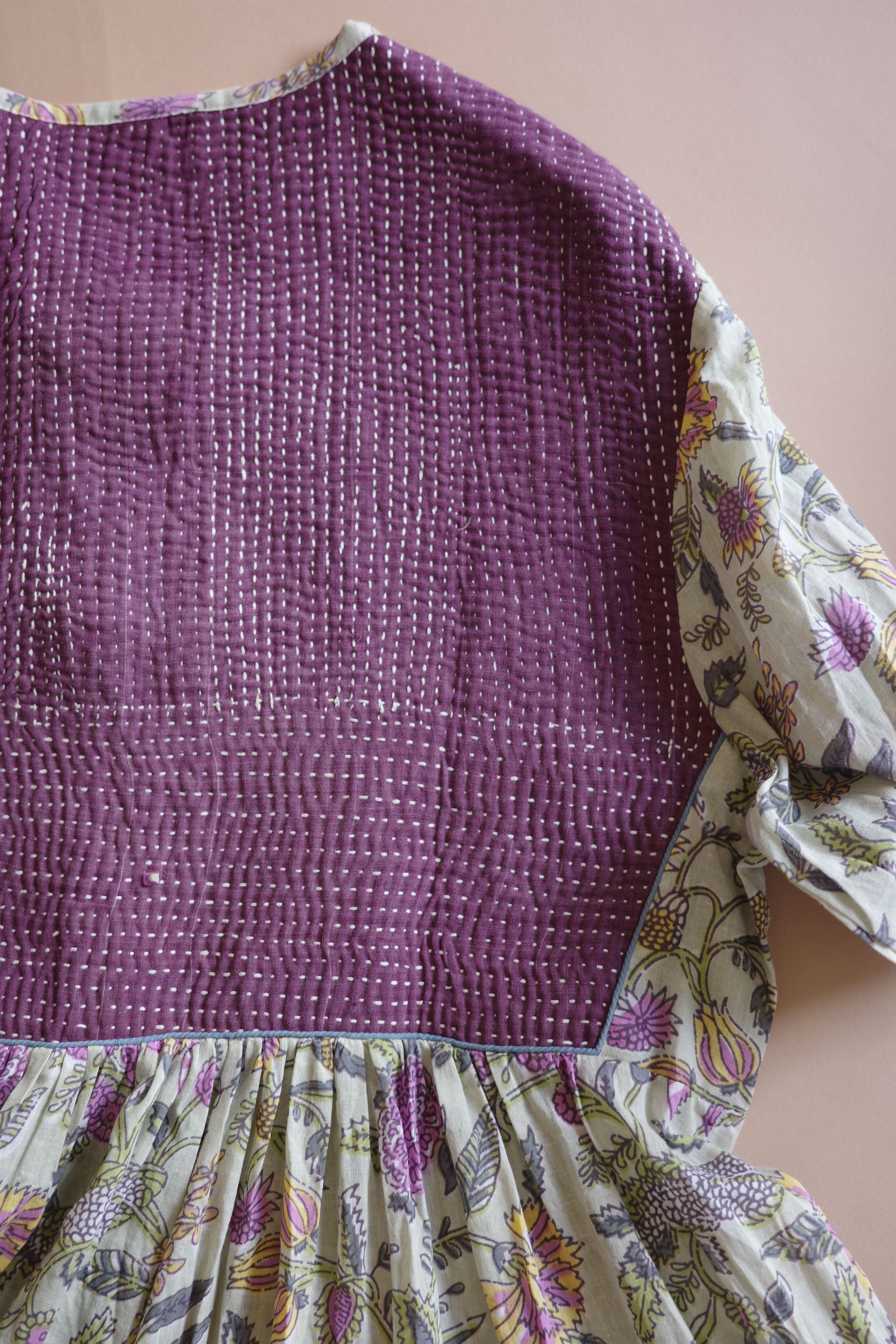 現在制作されているインド綿に美しいブロックプリントの布をドッキングしたワンピース。