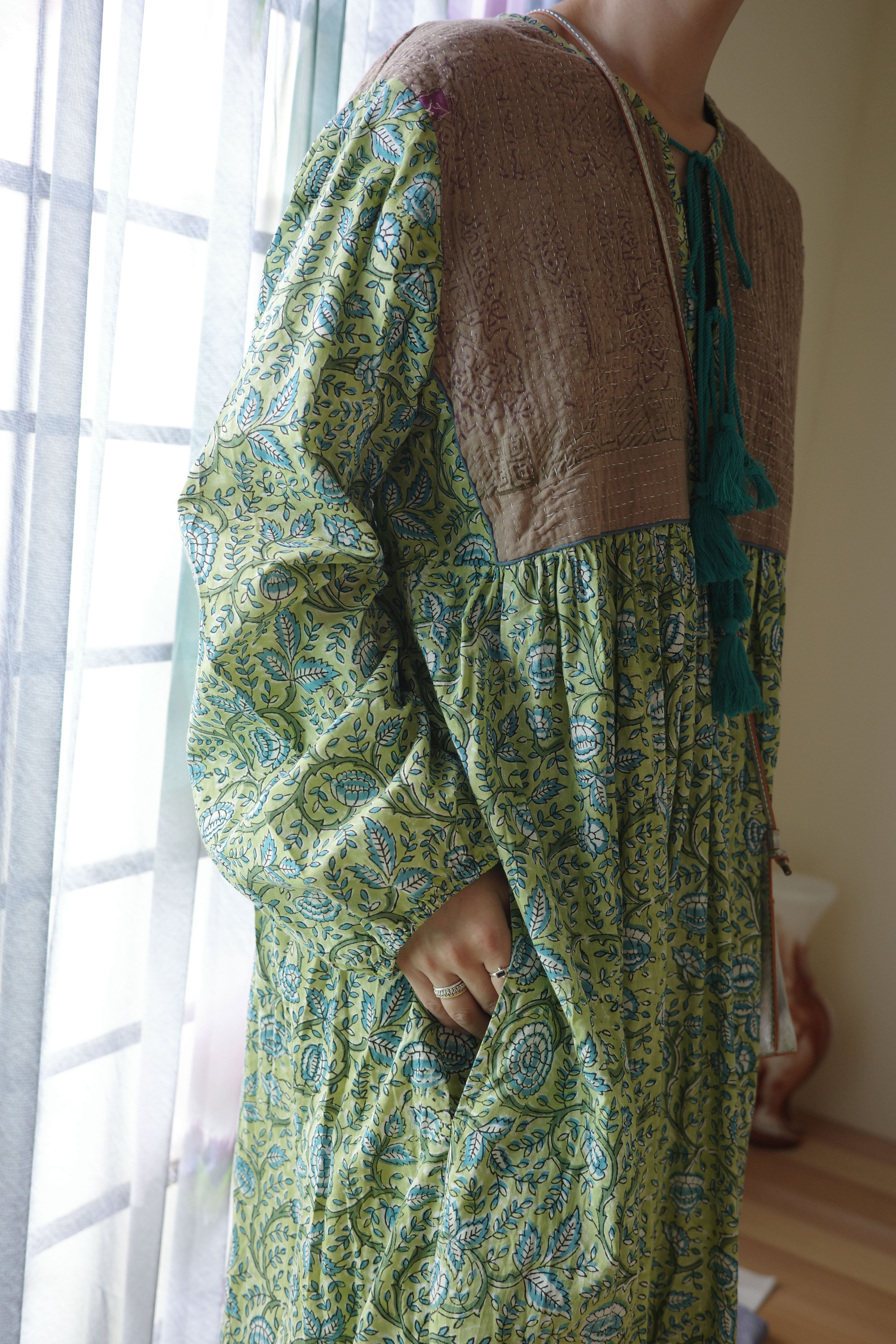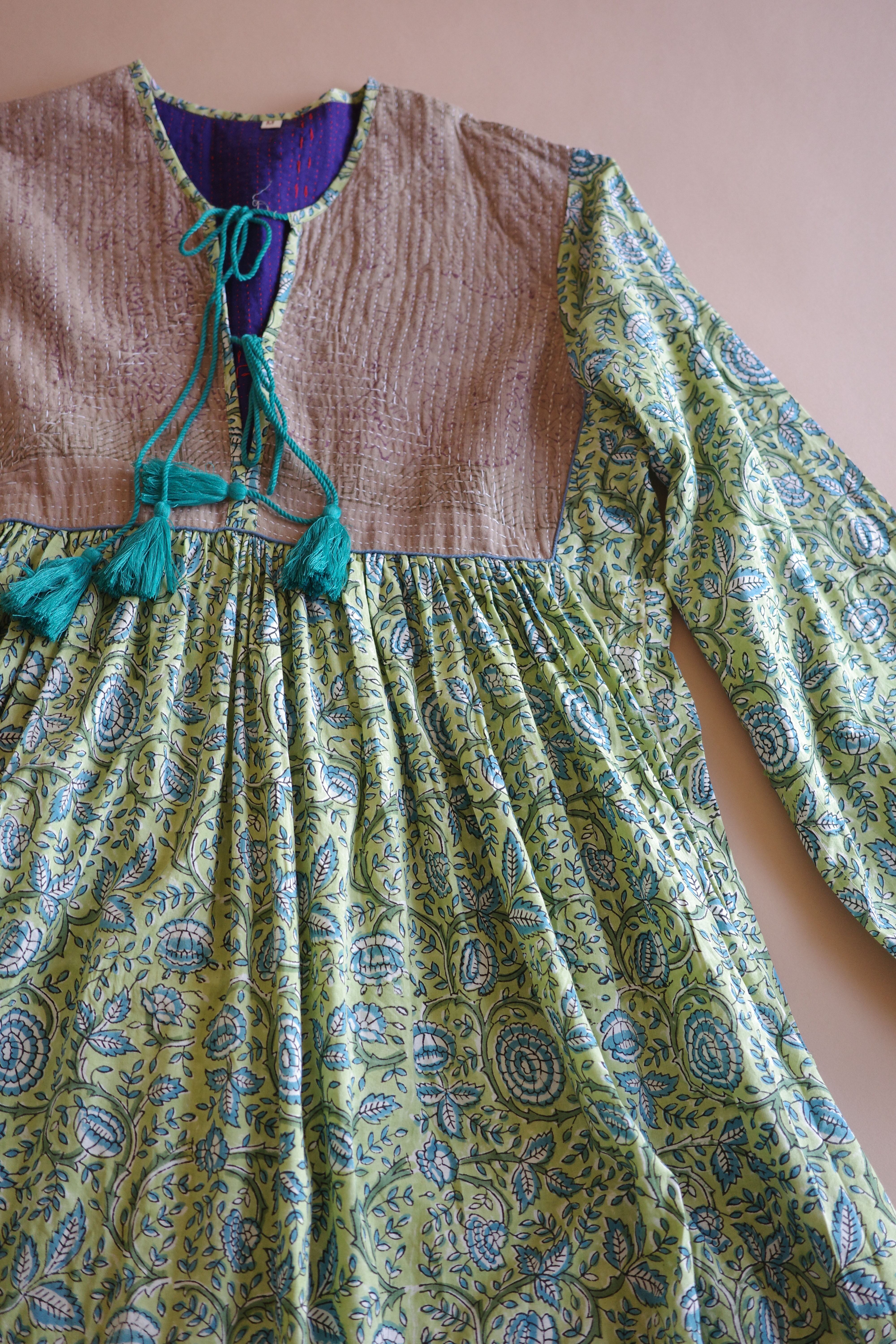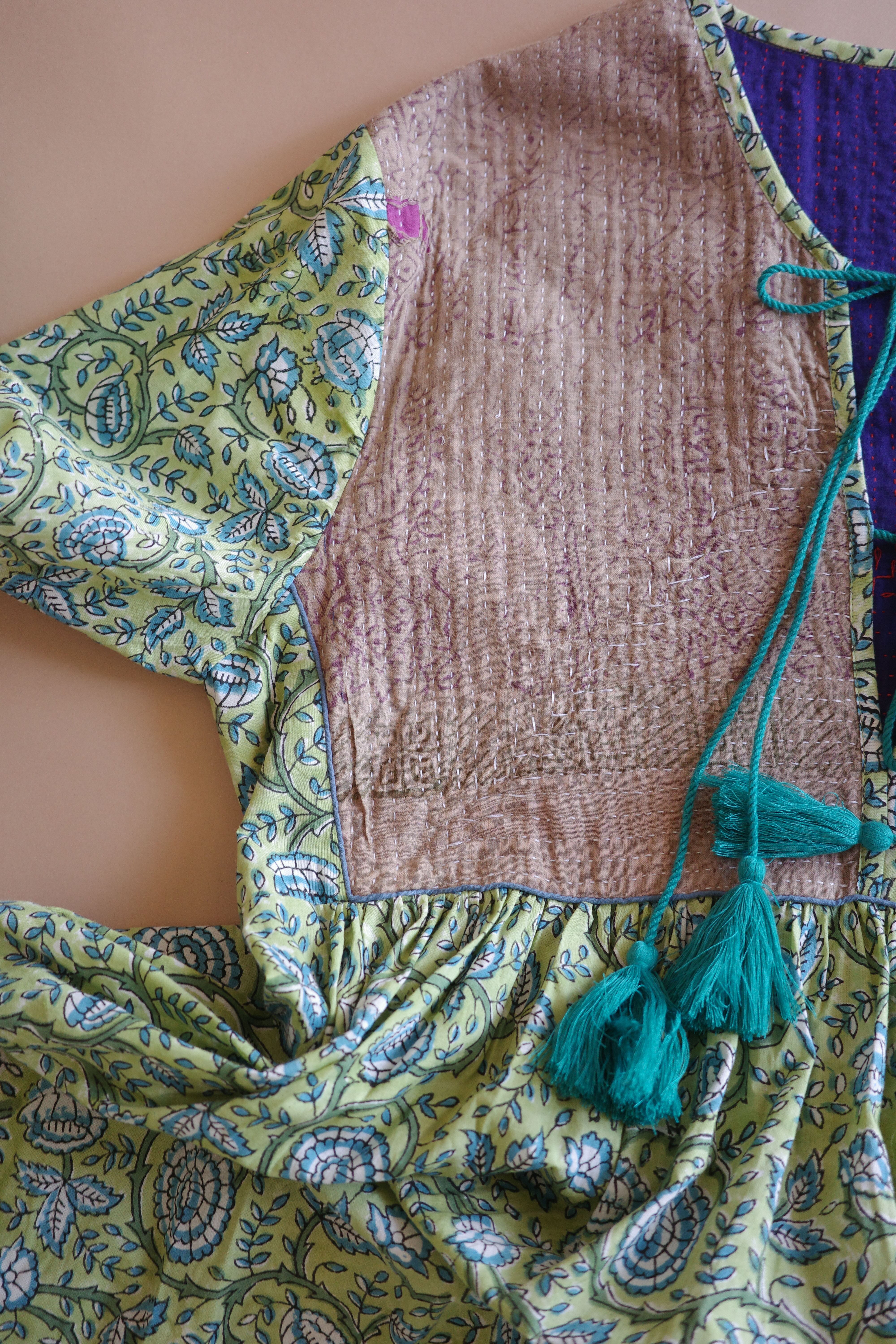 Kantha hand printed indian cotton dress