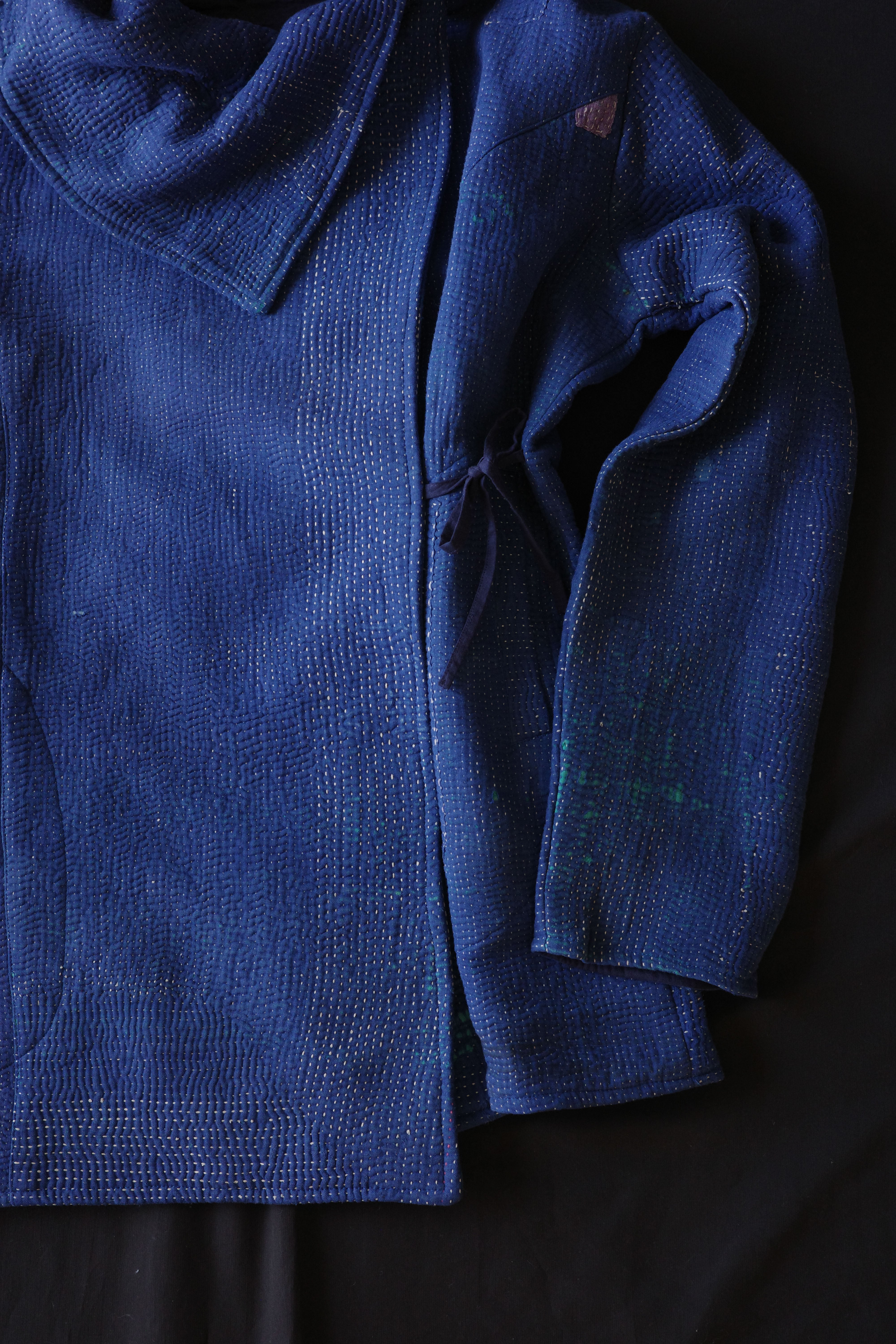 手仕事の真骨頂とも言われる伝統的なヴィンテージのカンタキルトを使用したジャケット。