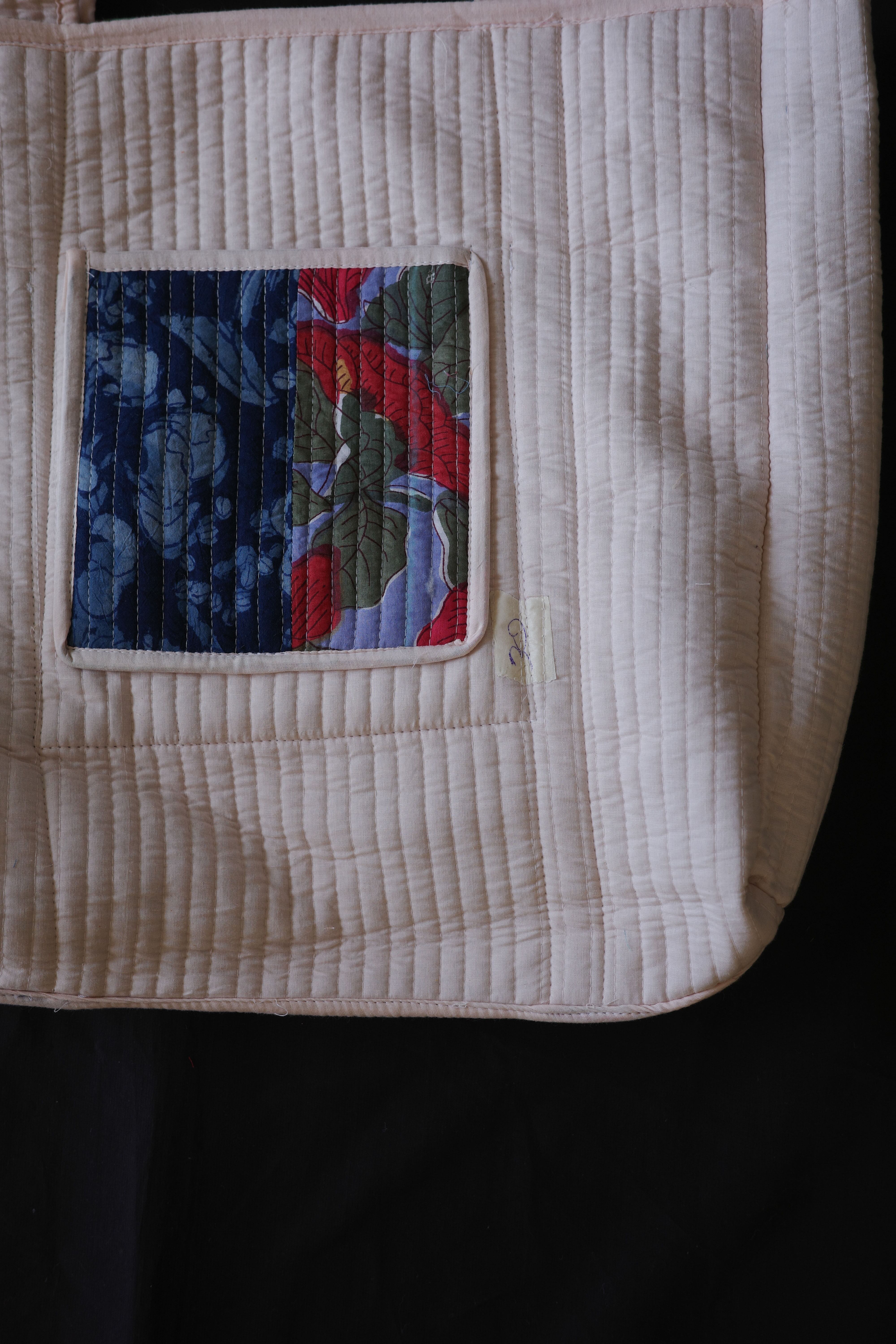 インドで制作されているキルティングのパッチワークトートバッグ。