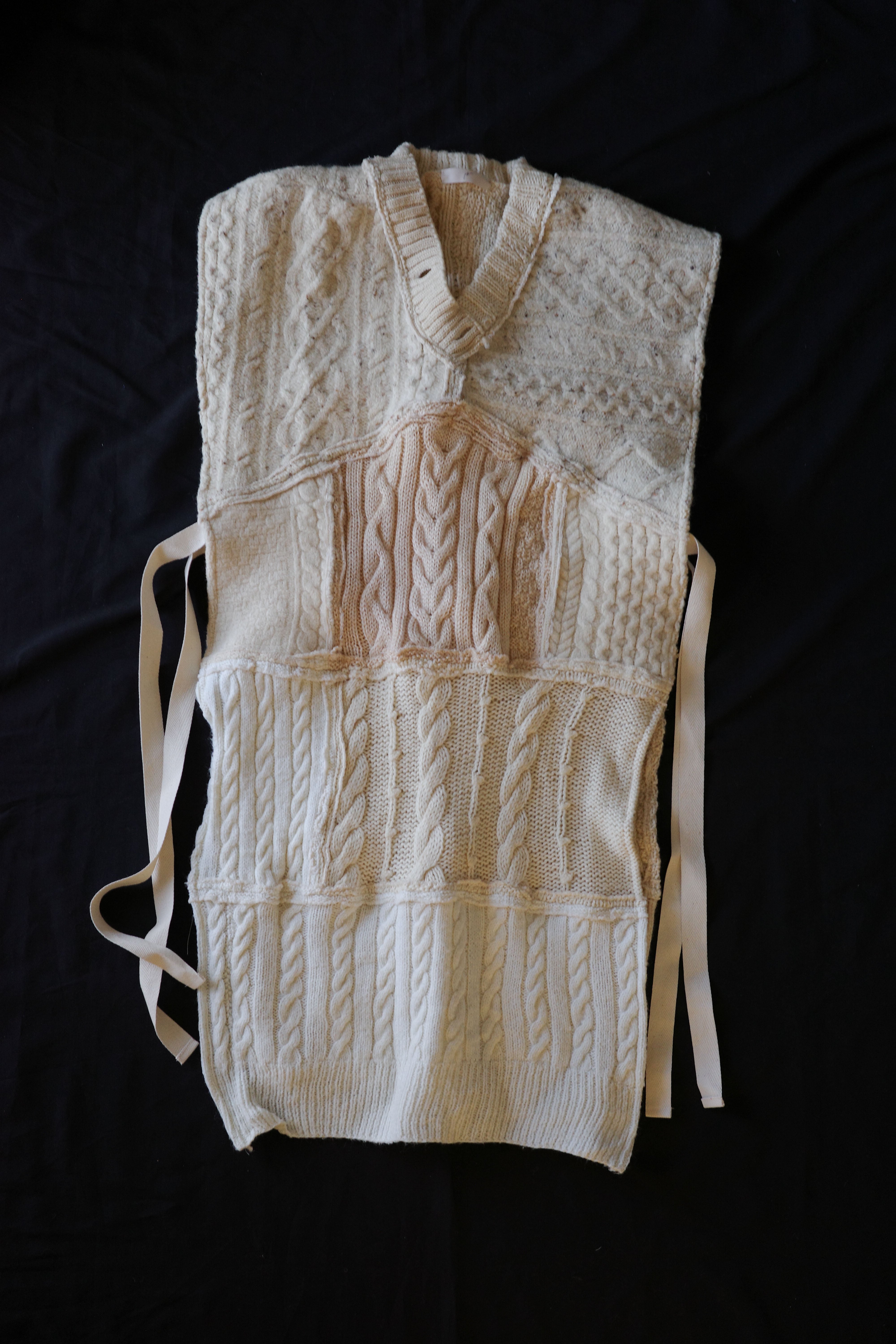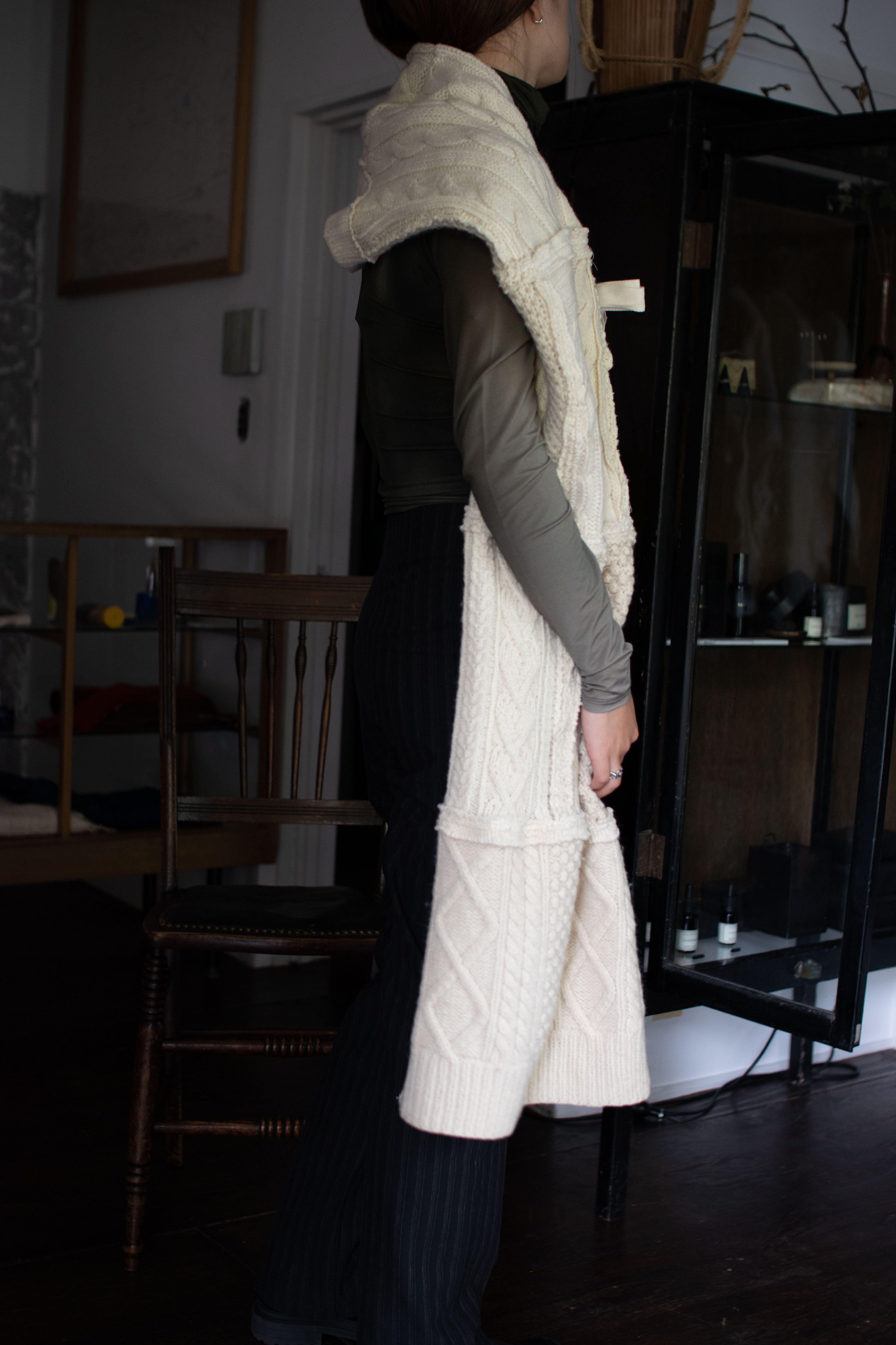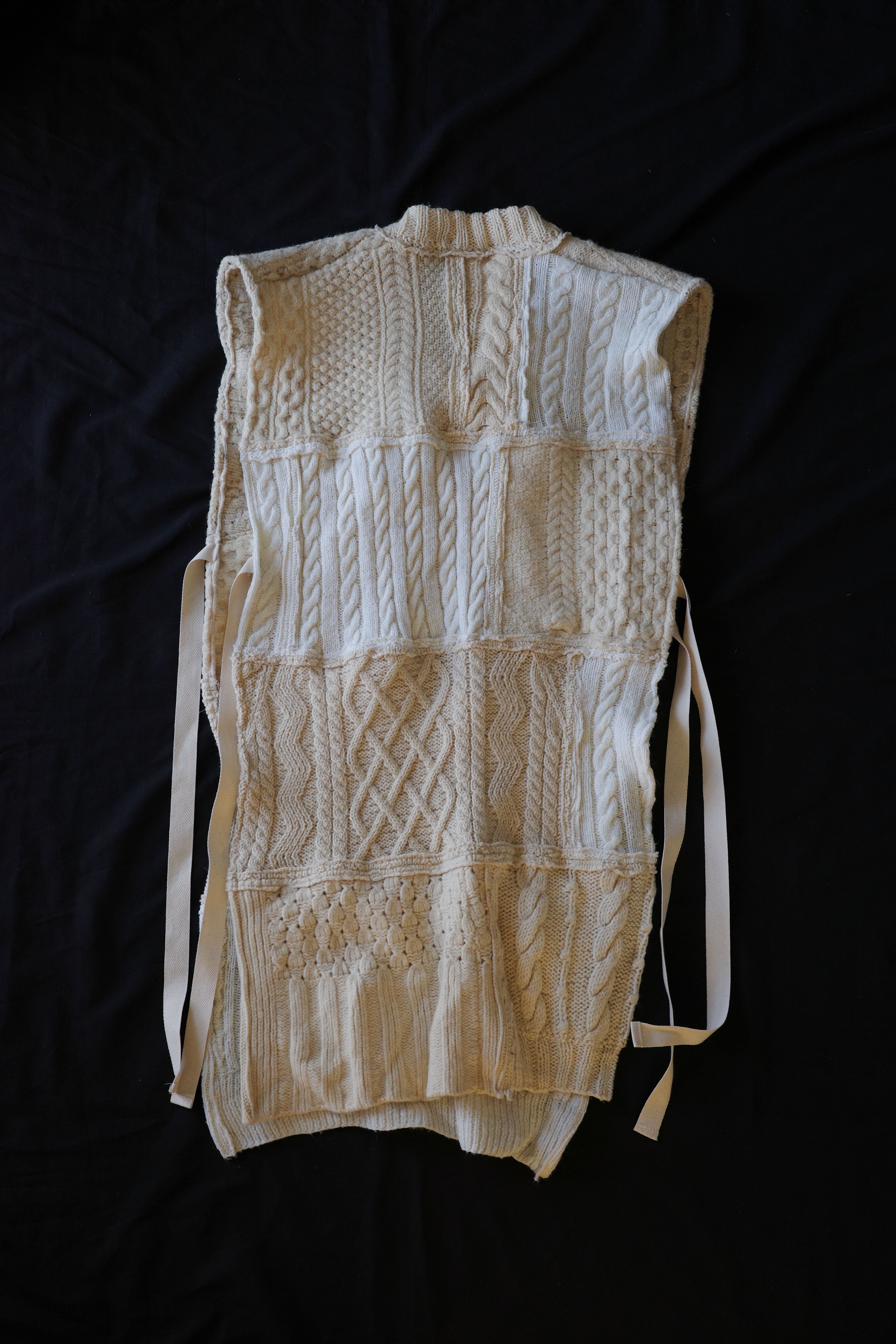 ヴィンテージのフィッシャーマンニットを再構築したベスト。