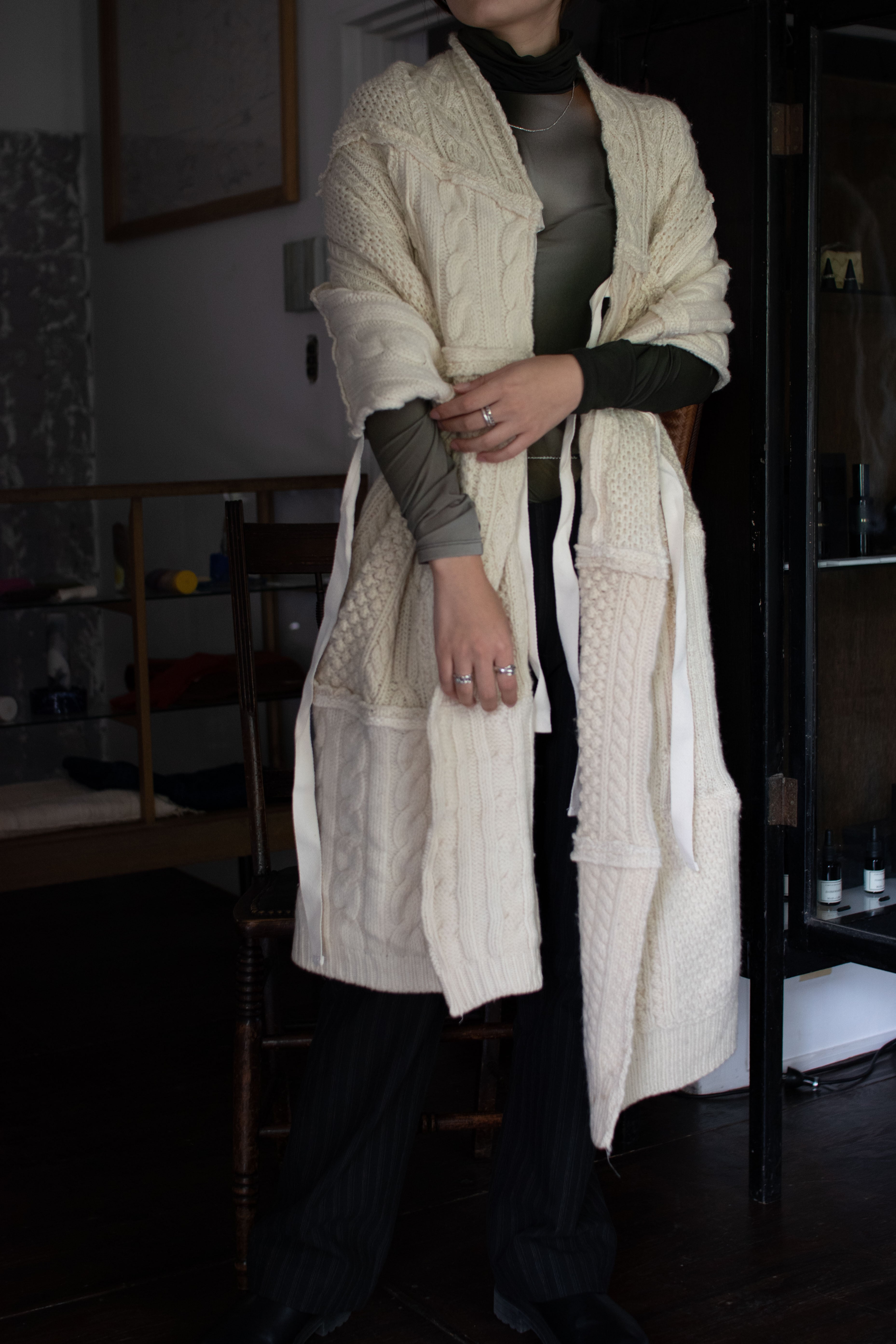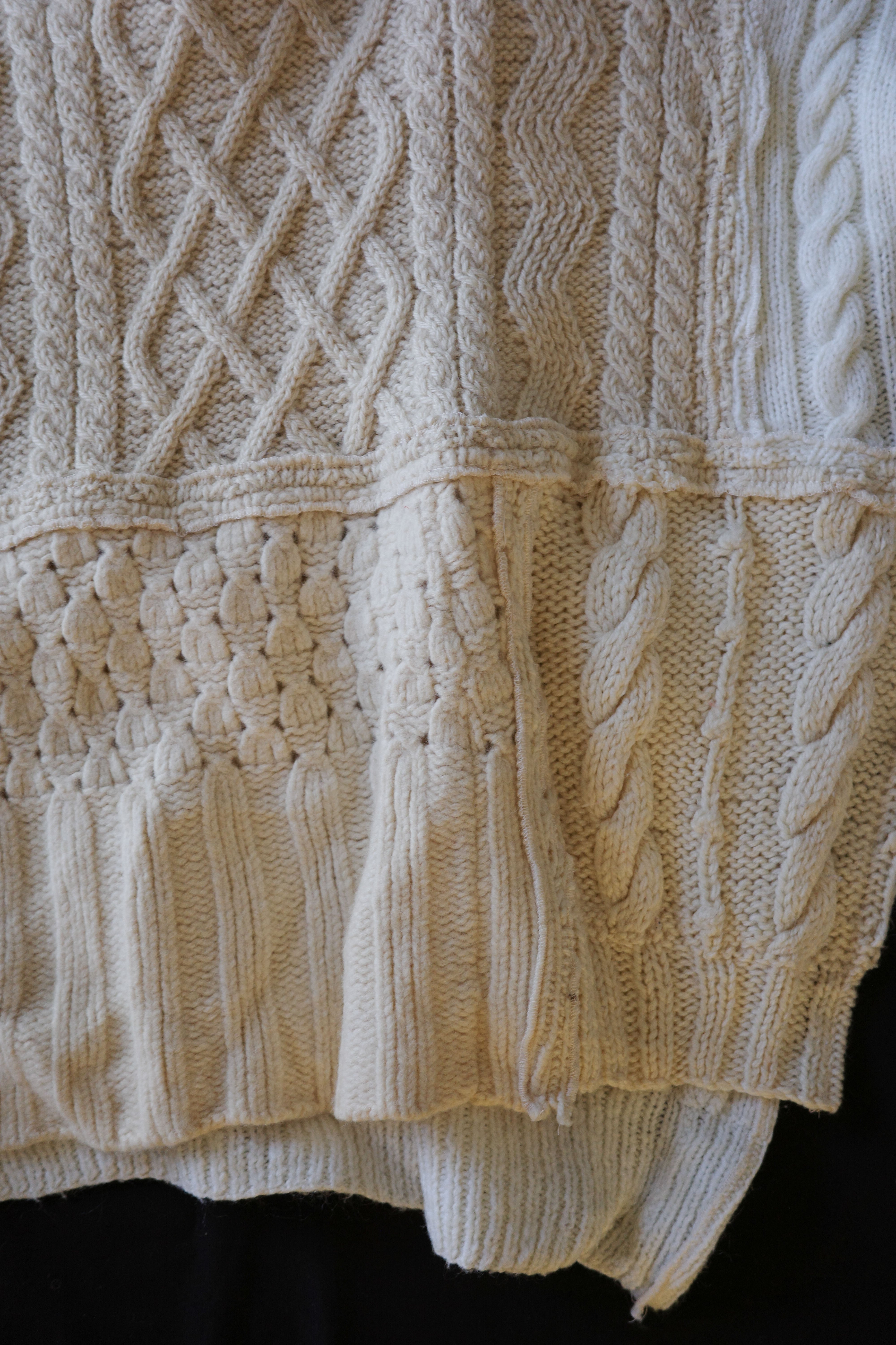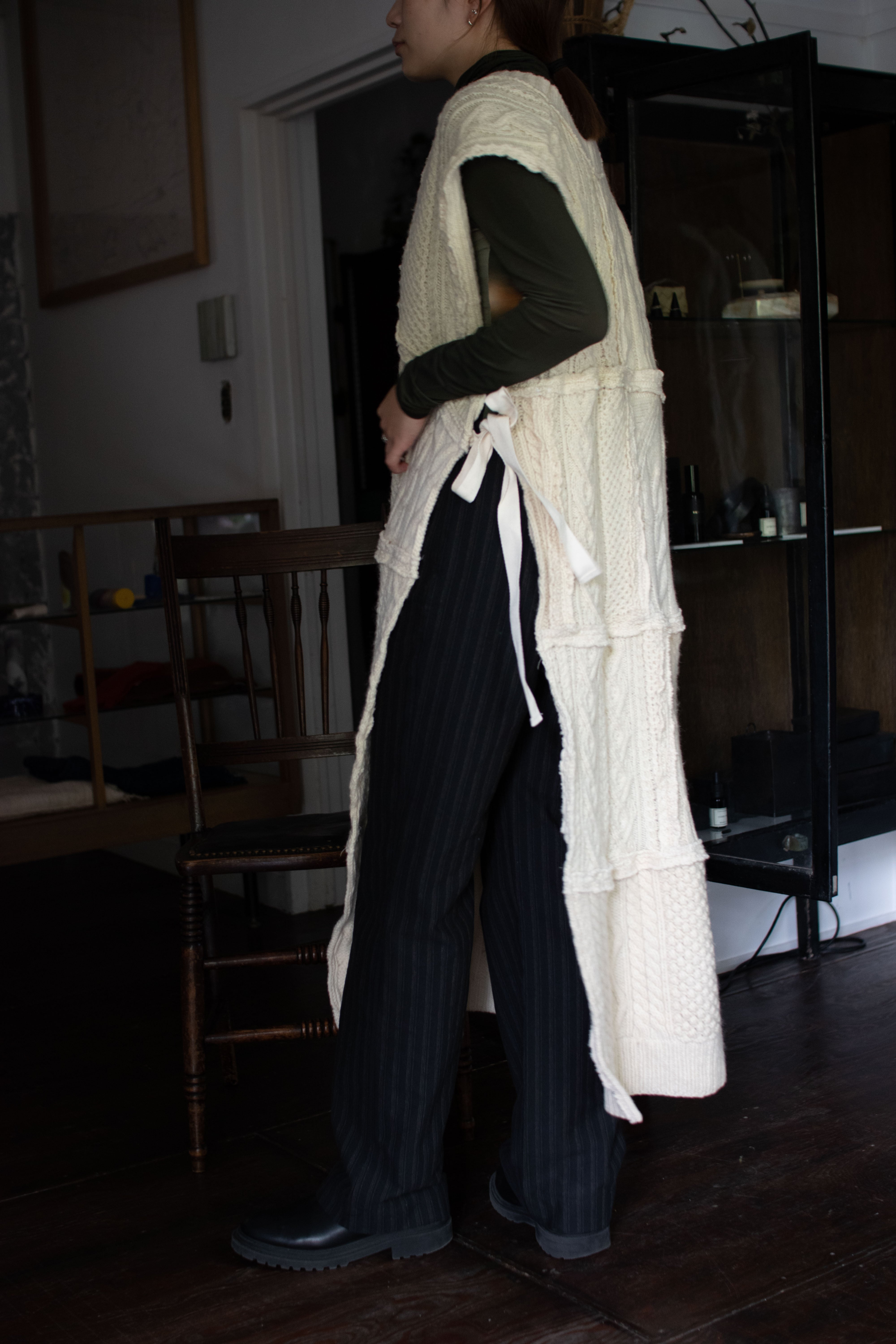 ヴィンテージのフィッシャーマンニットを再構築したベスト。