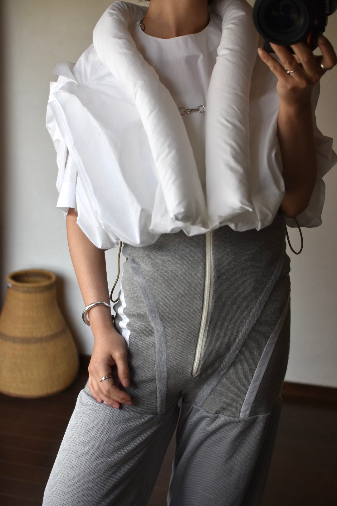 遊び心のあるデザインですが身体と合わさると生地の広がりやギャザー、ドレープが美しいです。